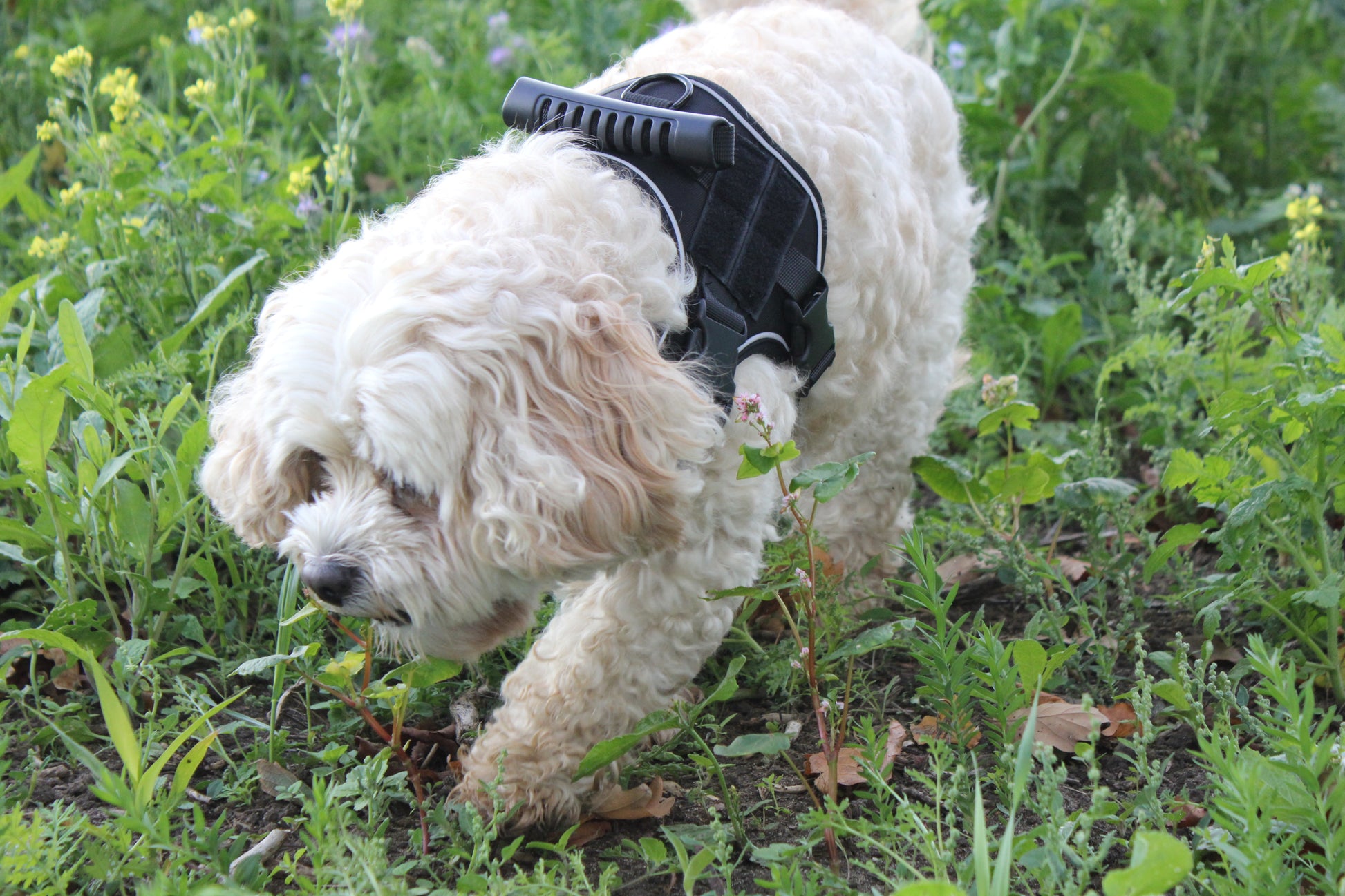 For smaller dogs, this harness is especially recommended. Unlike traditional collars, it prevents strain on delicate throats and provides secure control through the durable metal loop positioned on the top of the harness. Unlike rigid collars, it is comfortably padded and designed to sit softly against your dog’s body, ensuring both security and comfort throughout every walk.