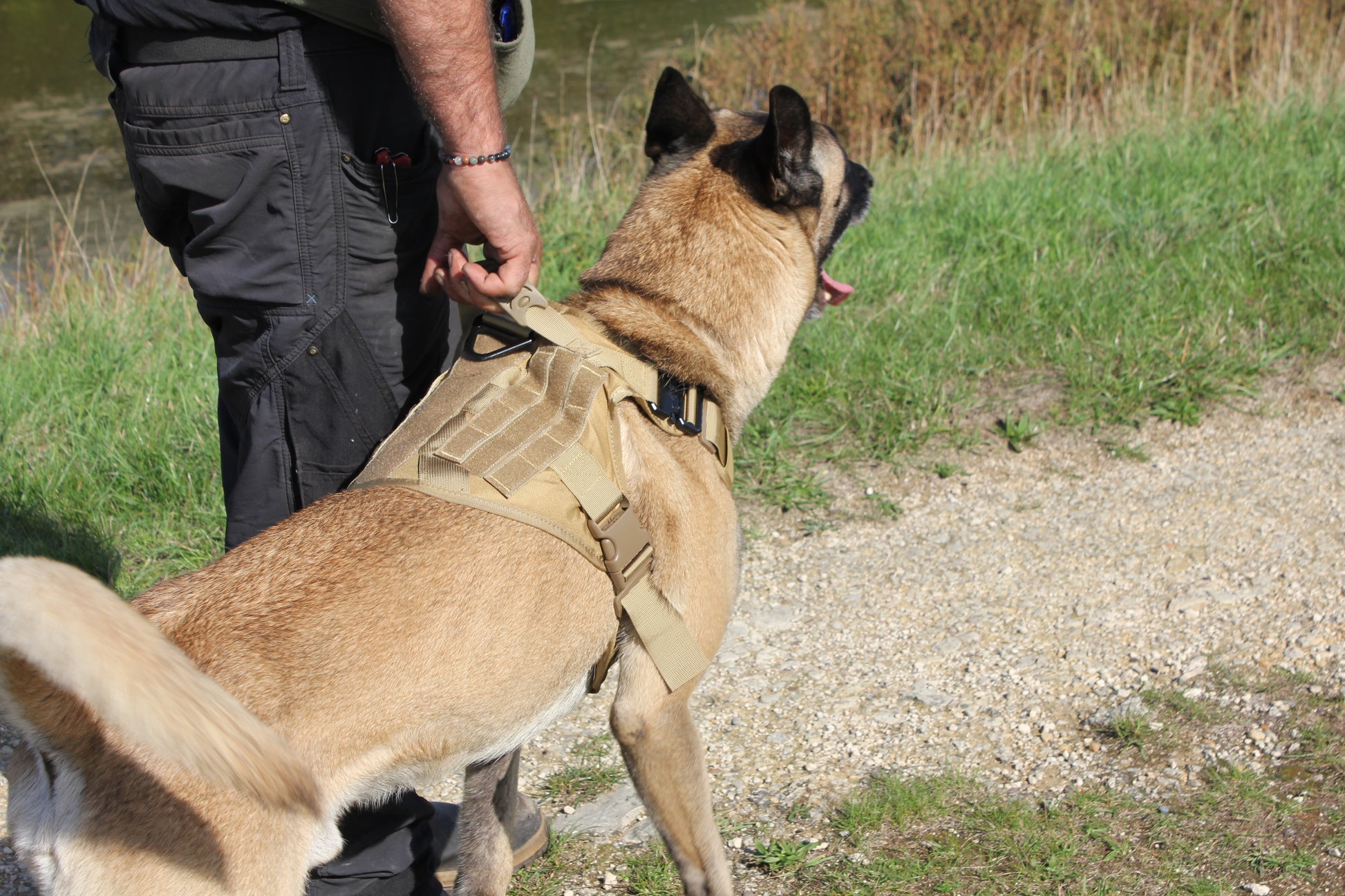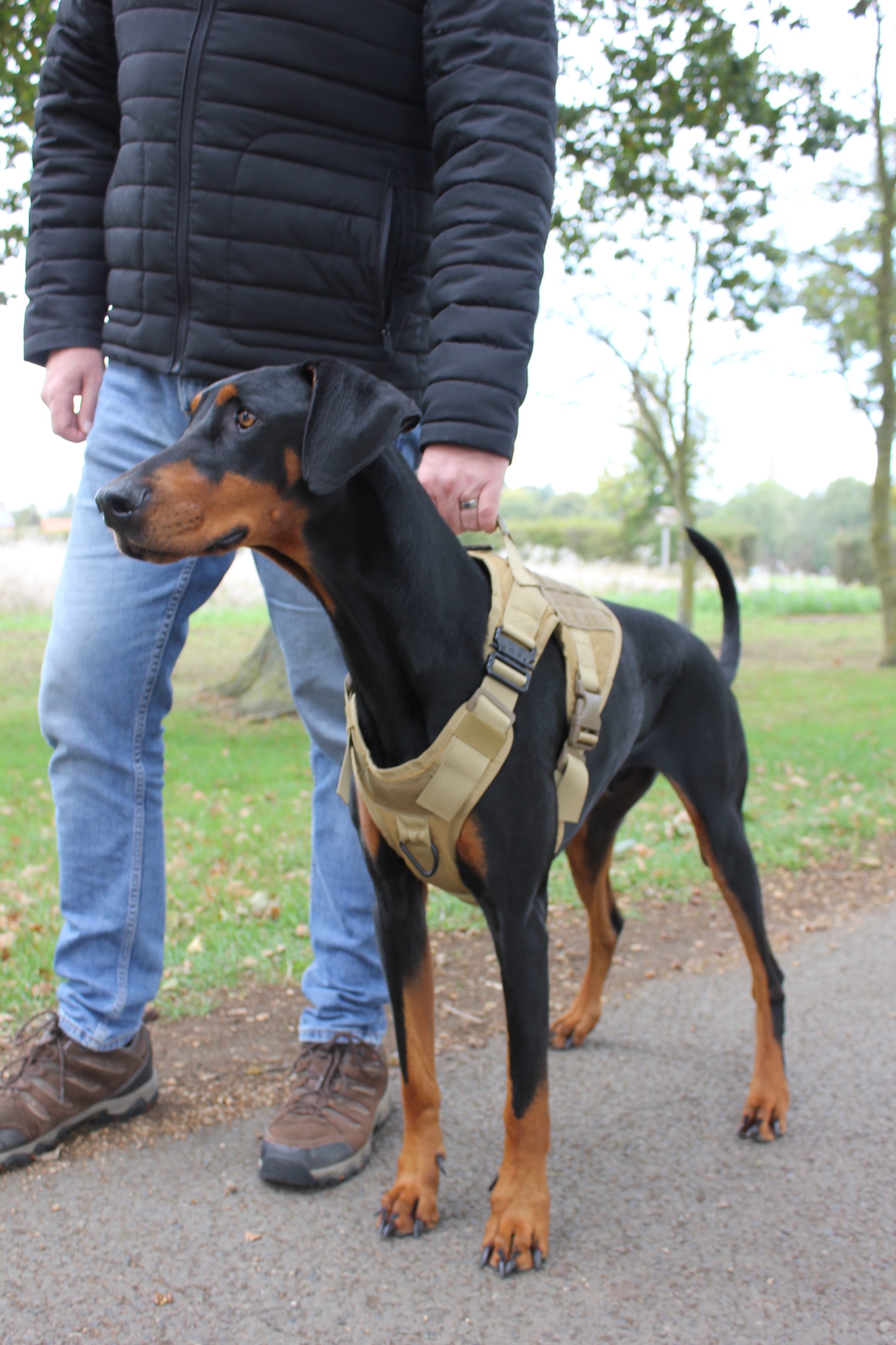 Designed for larger dogs, this heavy-duty harness combines durability, comfort, and maximum control. Made from military-grade materials with reinforced stitching, it offers full-body protection and long-lasting wear. Four strong, quick-release buckles and fully adjustable straps ensure a snug, secure fit while allowing full mobility.